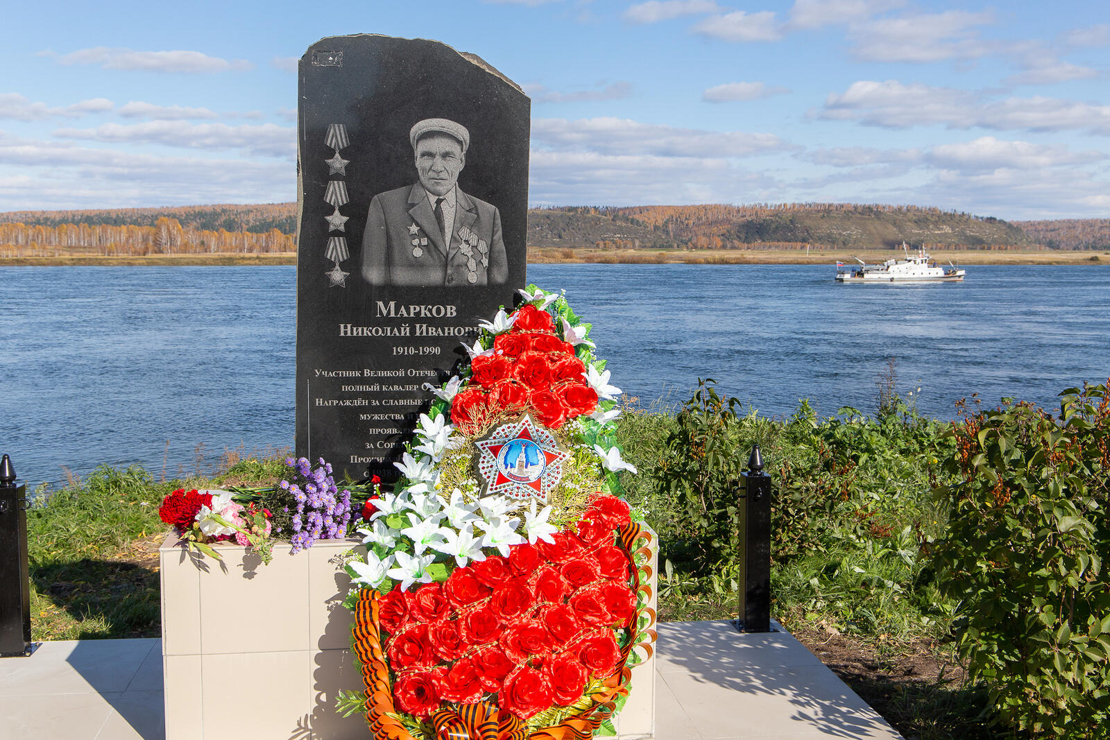 В День пожилого человека в посёлке Тельма Усольского района на берегу Ангары состоялось долгожданное открытие памятника Николаю Ивановичу Маркову – участнику Великой Отечественной войны, полному кавалеру ордена Славы.