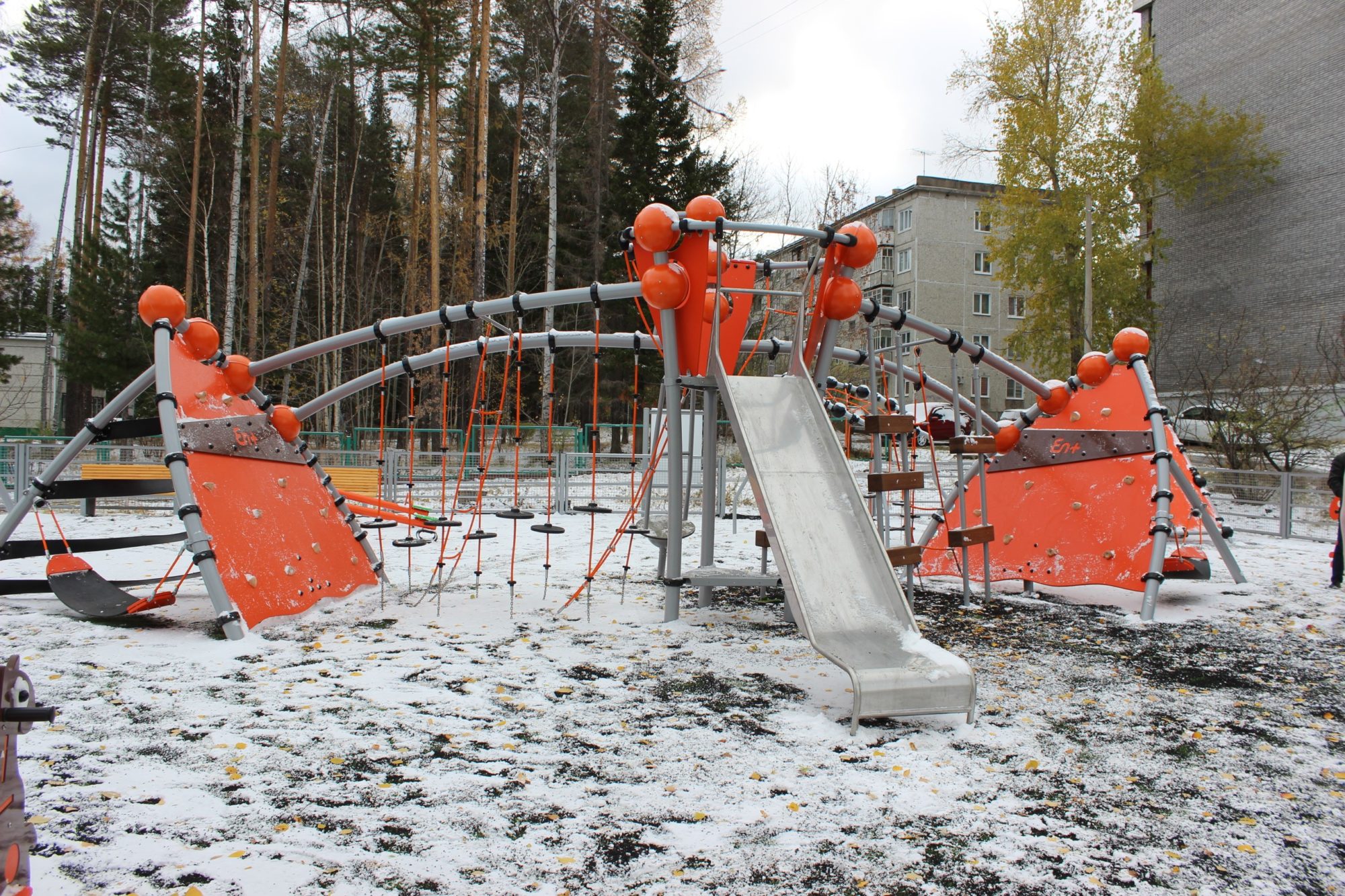 Детский игровой комплекс за пять миллионов рублей построили в Усть-Илимске На площадке есть комплекс с горкой и канатными элементами, разные виды качелей, игровой домик, спортивный лаз «Медуза» и качалки для самых маленьких.