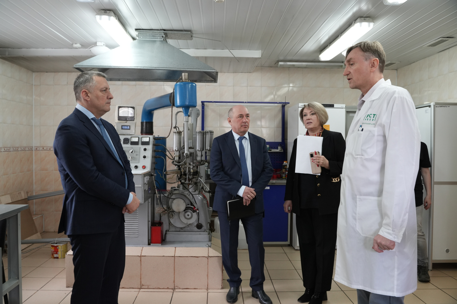 В ходе посещения метрологических лабораторий и испытательного центра Иркутского ЦСМ губернатору представили эталонное оборудование для поверки электромагнитных, радиотехнических и других средств измерений. В испытательном центре губернатор ознакомился с процессом испытаний различной продукции — мебели, топлива, масел и питьевой воды — на соответствие техническим регламентам.