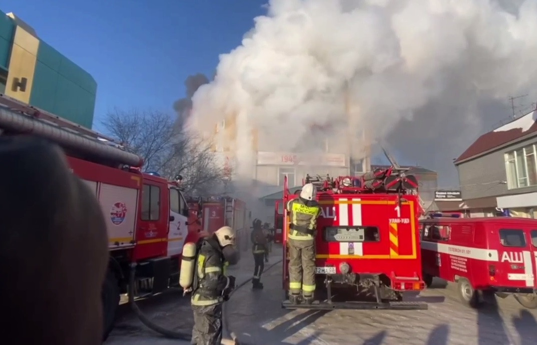 Днем 10 декабря в городе Улан-Удэ произошел пожар в торговом центре «Баянгол» на улице Терешковой. Как сообщили в МЧС, на тушении работают 39 человек. Пожар охватил сначала кровлю, а потом еще и несколько этажей здания. В целом здесь располагалось порядка 60 организаций.