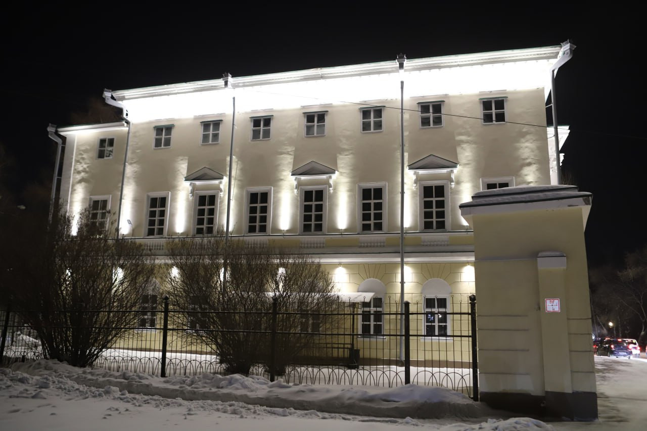 Бывший роддом на улице Каландаришвили в Иркутске украсили архитектурной подсветкой