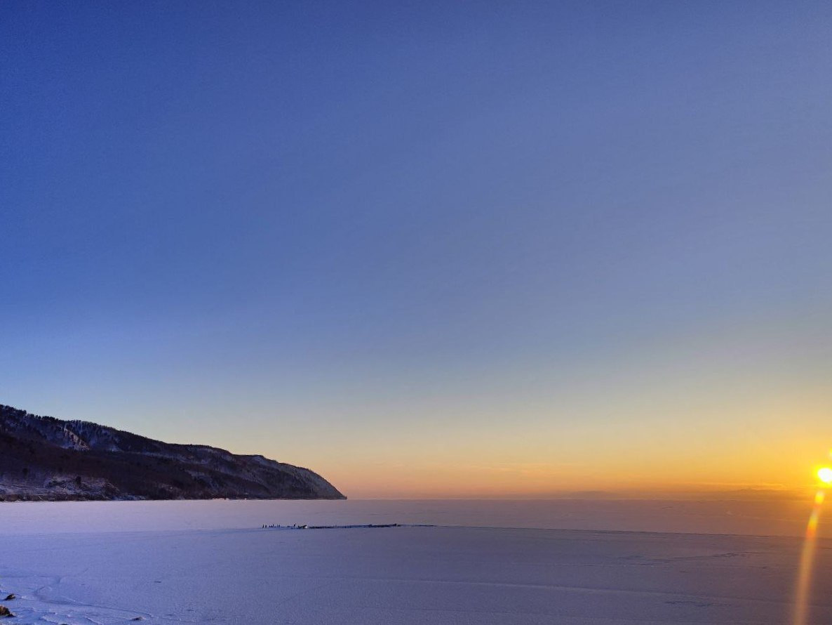 Государственный инспектор Маритуйского участкового лесничества ФГБУ «Заповедное Прибайкалье» Екатерина Доманова отмечает, что юг Байкала покрылся льдом в этом году в Крещение, но еще день назад озеро парило, а сегодня с утра уже застыло. Специалист отмечает, что при сохранении морозной погоды, у этого льда есть все шансы сохраниться до весны.