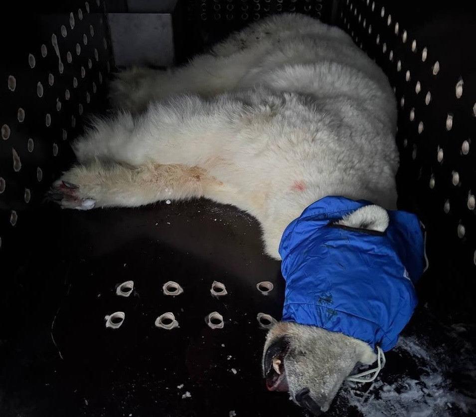 Истощенную белую медведицу, вышедшую к людям, поймали в Сибири