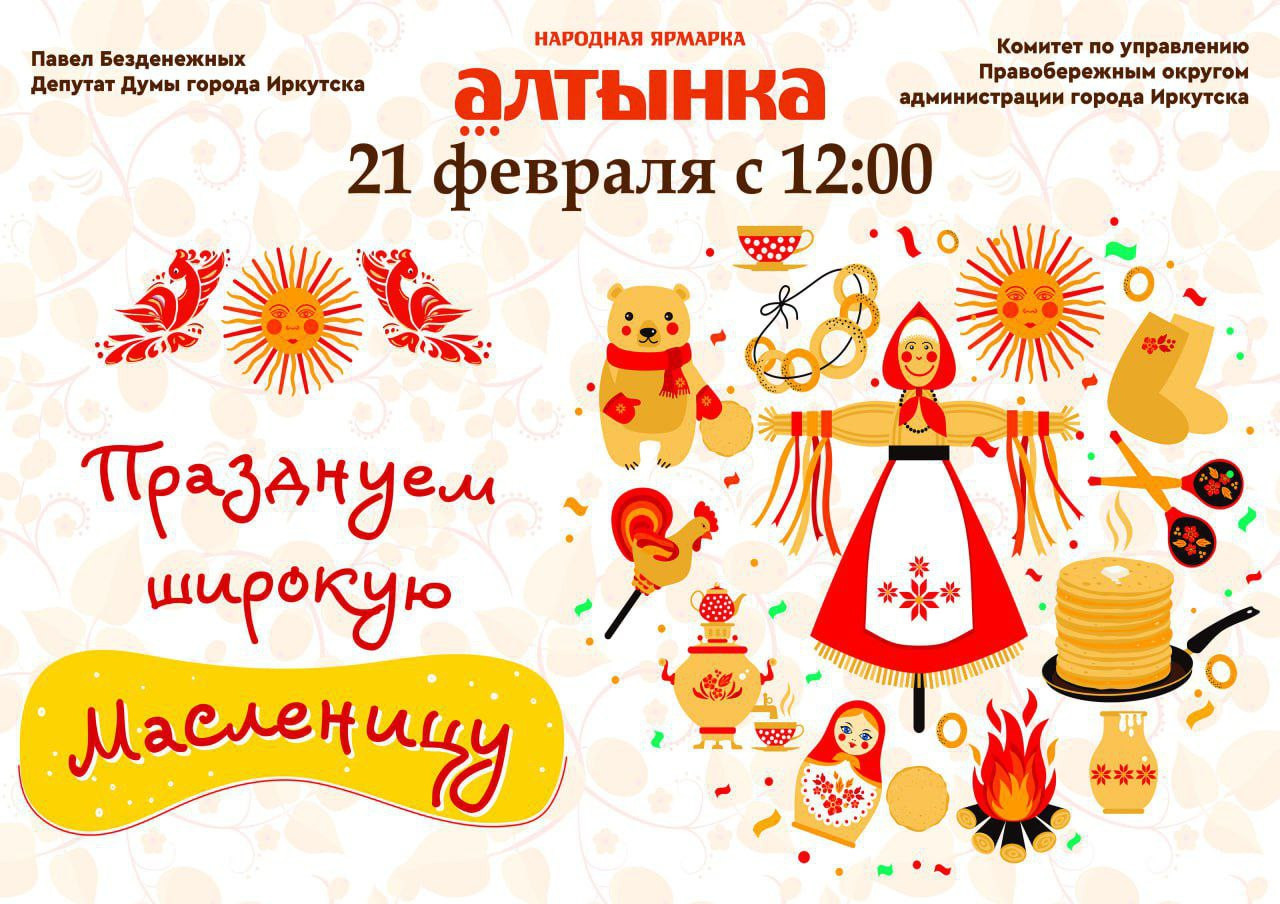 Масленицу встретят на народной ярмарке «Алтынка» в Иркутске 21 февраля