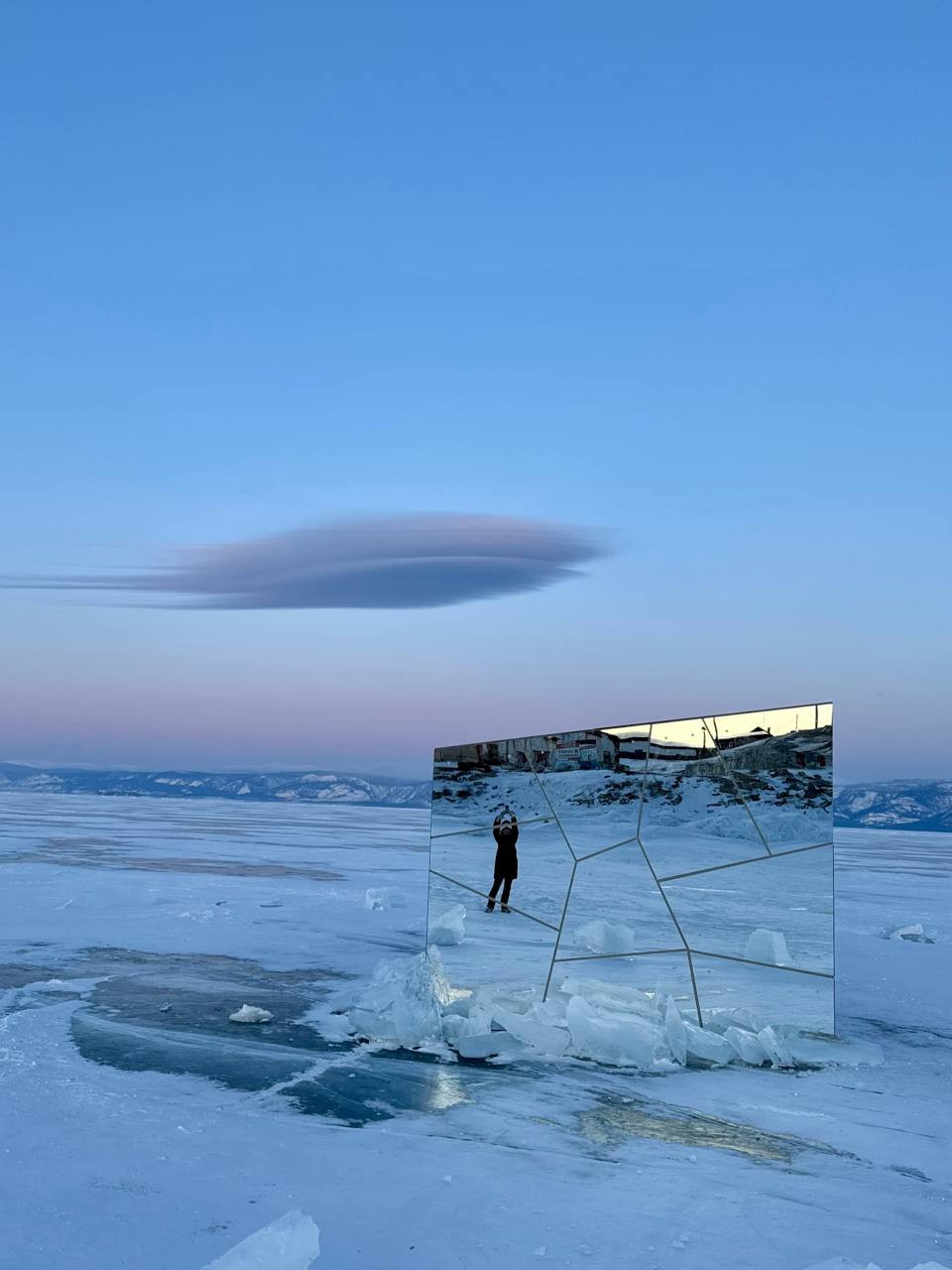 Зеркальную арт-инсталляцию установили на льду Байкала