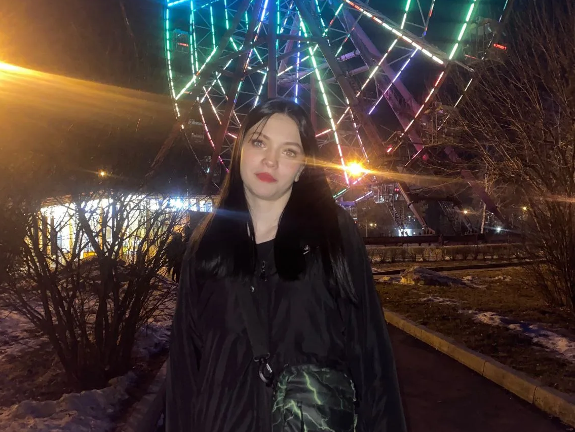 Приметы: рост около 175 см, глаза голубые, волосы темные до плеч. Была одета в серую ветровку и темные широкие штаны.