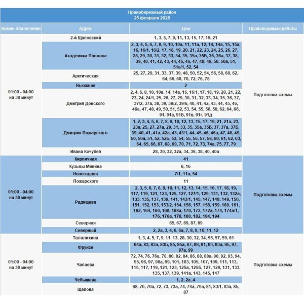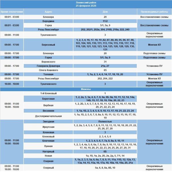 Среда, 25 февраля, станет днём плановых, но неотложных работ на электросетях Иркутска. Часть горожан столкнётся с временным отсутствием электричества. Энергетики обращаются к жителям с просьбой заранее ознакомиться с адресами и временем предстоящих отключений, чтобы минимизировать неудобства.