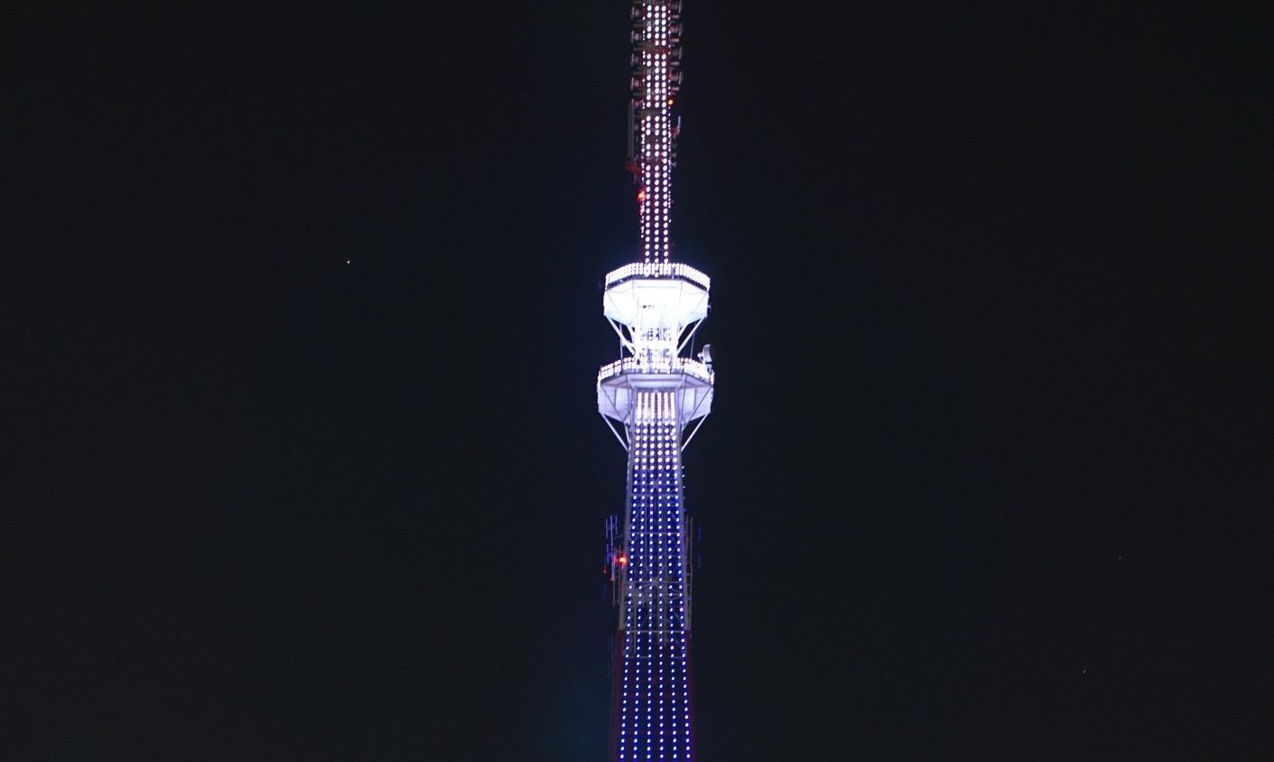 Такие же светопреставления ожидаются на телебашнях Оренбурга, Ростова-на-Дону, Самары, Ярославля и других городов.