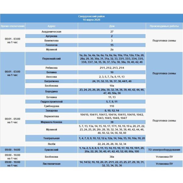 Сегодня в Иркутске запланировано проведение неотложных работ на электрических сетях, в связи с чем часть потребителей временно останется без электроснабжения. Энергетики проводят подготовку схем, замену трансформаторных подстанций (КТП) и техническое обслуживание оборудования. Об этом сообщили в группе «Свет38» в соцсети «ВКонтакте» (16+).