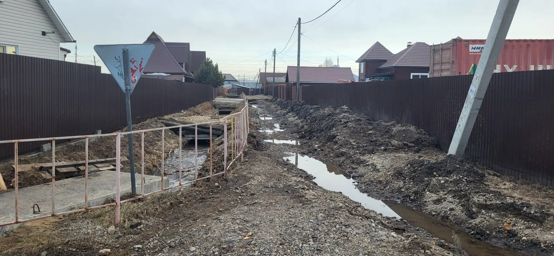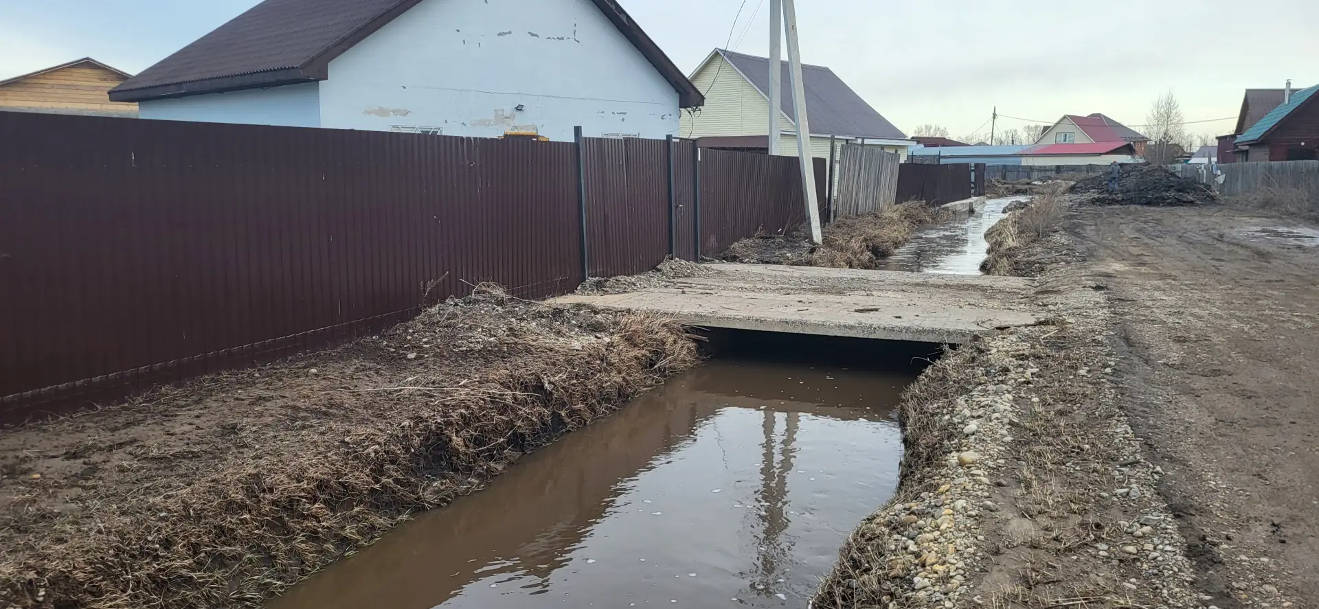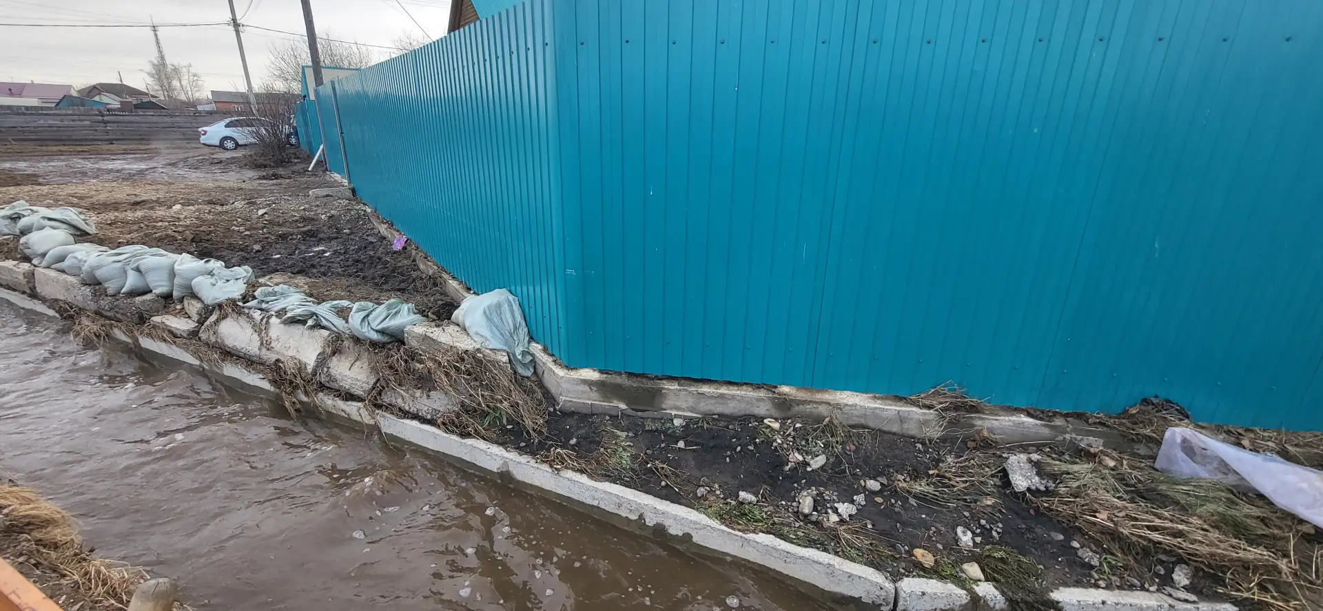 Елена говорит, что сельчанам поступали уведомления о возможных паводках с самого начала года, людей просили прочистить канавы. В целом ситуация не новая — Западный на памяти Елены топит уже в пятый раз. Нынче начало топить где-то неделю назад. Сегодня вода спала, но была очень высокой. Люди показали, что на заборах остались следы от воды, по которым можно определить её уровень.