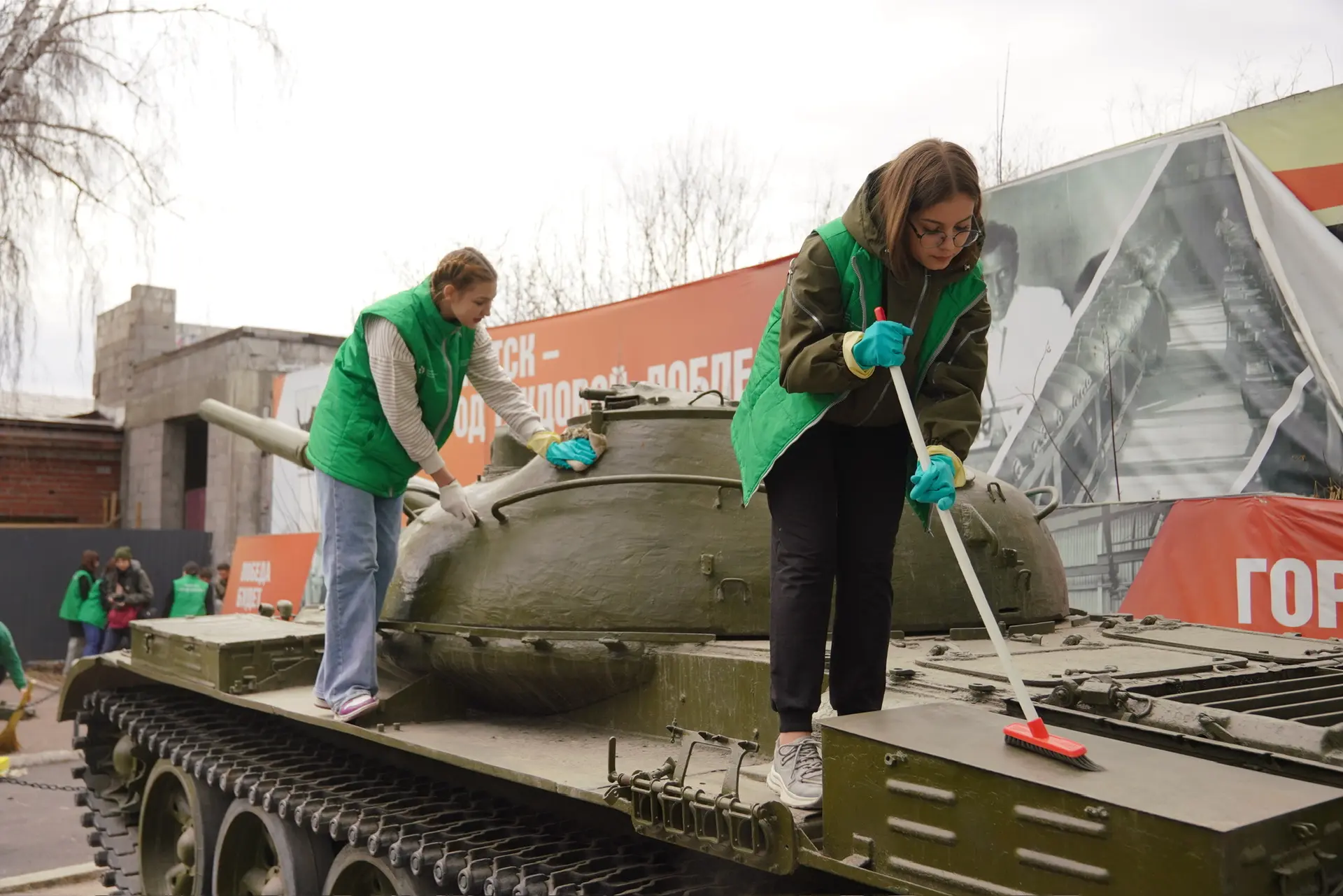 Здесь трудились 15 членов студенческого координационного совета Иркутской области. Они убрали мусор и помыли военную технику после зимы.