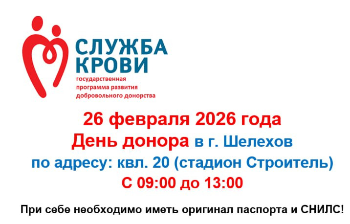 Донорская акция пройдет в Шелехове 26 февраля