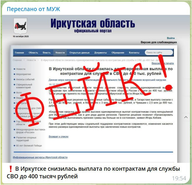 Правительство Иркутской области опровергло фейк о сокращении выплат контрактникам